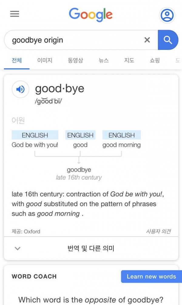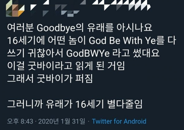 줄임말로 된 현재뜻 - 헤어질때 하는말 굿바이