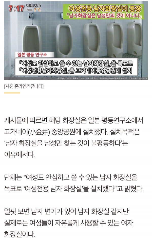 여자는 생식기가 짧아서 앉아서 소변을 봐야하는데