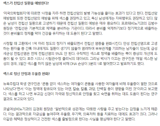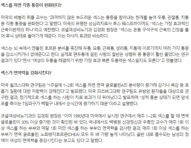 섹스를 하면 남자 여자 건강에 좋다고 한다.