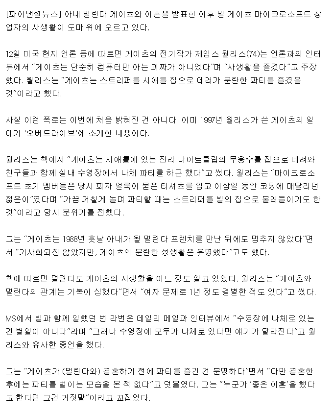 "다만 결혼한 후에는 파티를 벌이는 모습을 본 적 없다"