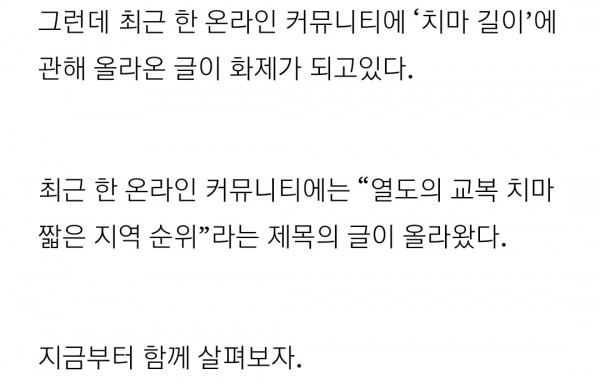 한국은 보통 치마길이를 45cm를 기준으로 한다고 합니다.