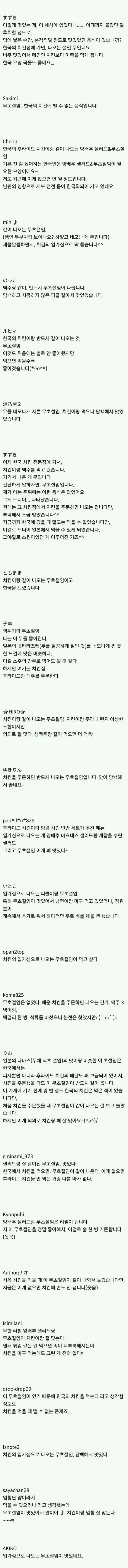 일본에서는 치킨을 시키면 무초절임이 없다고 함