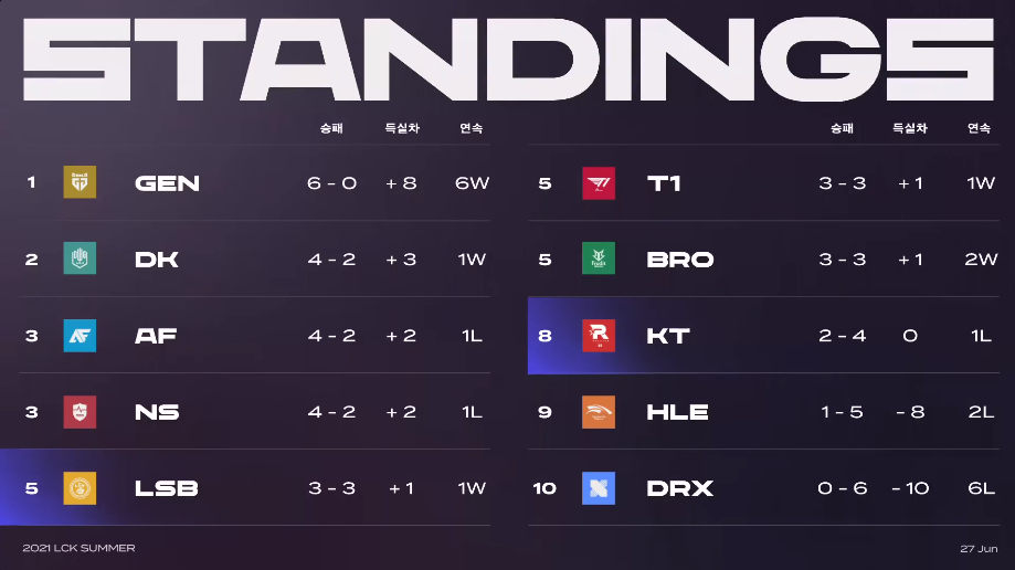 | [롤] 2021 롤챔스 서머 1주차 결과 (LOL) (0) | 2021.06.14 |
