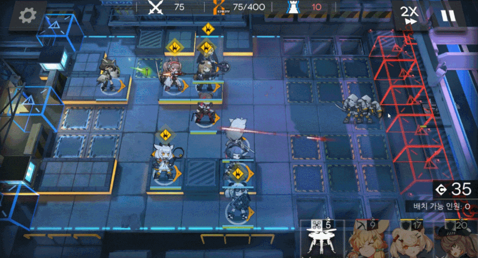 가드 2~3명(2저지 이상 가드 or 라플란드 or 은재) - 은재 사용시 2정예화 1레벨 이상