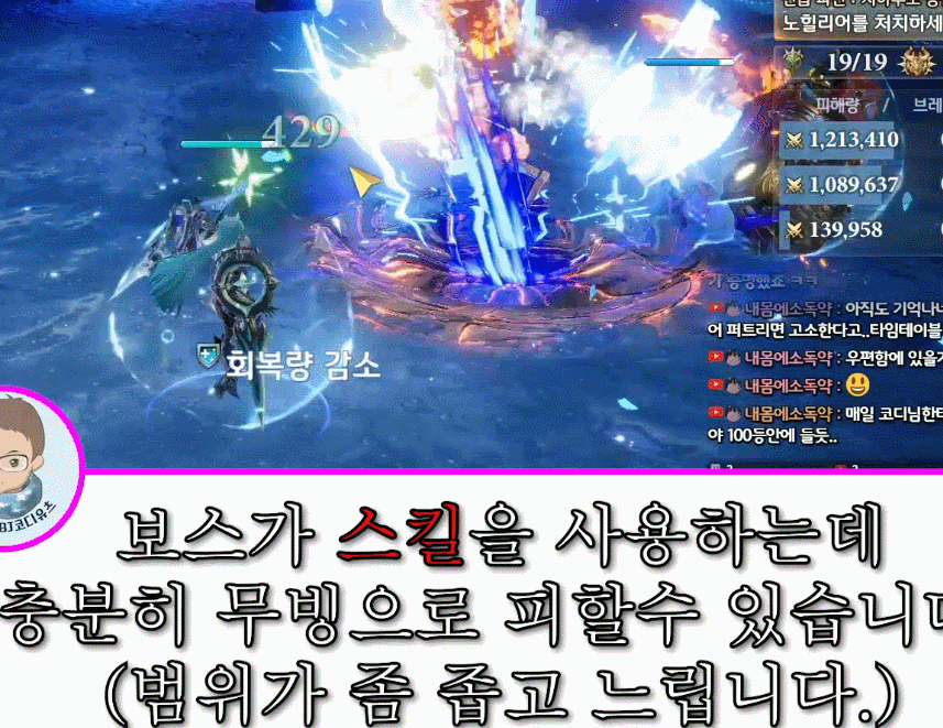 보스 스킬 정통으로 맞으면 꽤 위험할수 있습니다.