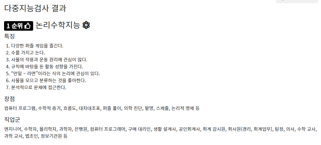 다중지능검사 사이트 : https://multiiqtest.com/