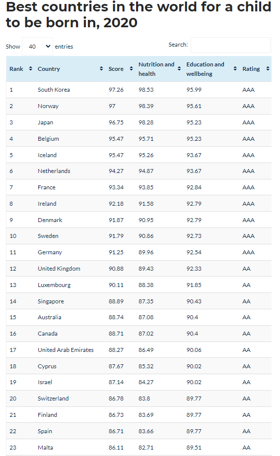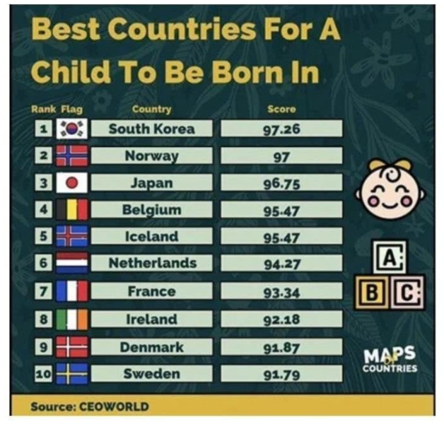 아이가 태어나기 가장 좋은 나라는 1위 대한민국