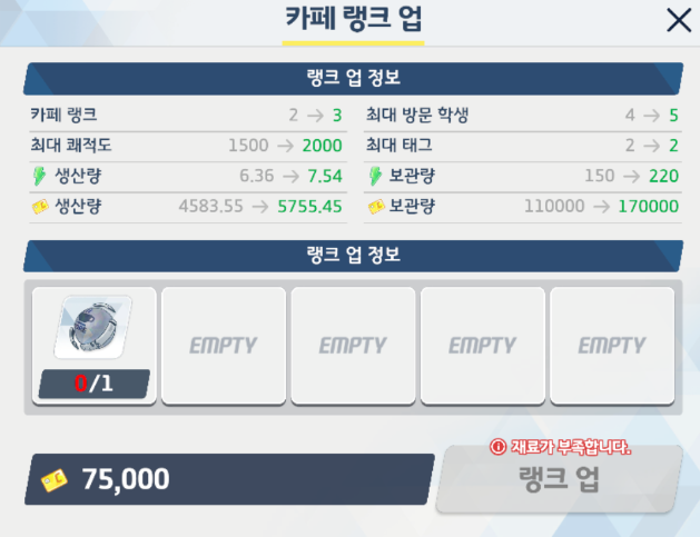 카페는 레벨에 따라서 랜덤으로 캐릭터들이 오고
