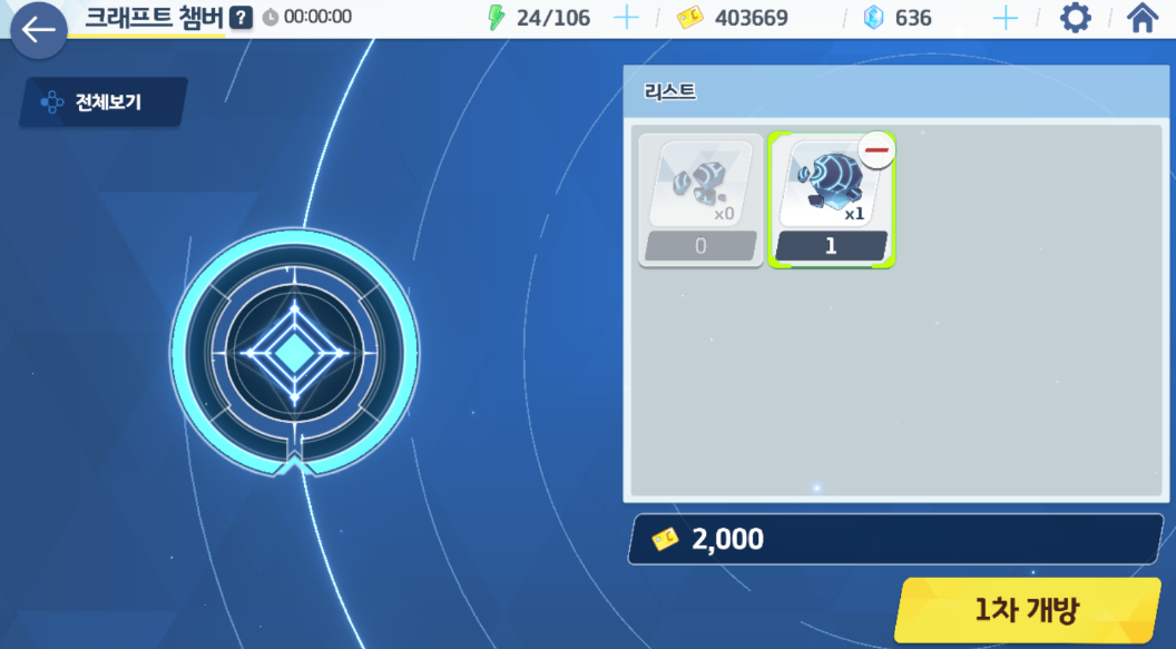 처음에는 재료를 키스톤 조각 10개 or 키스톤 1개만 사용하여