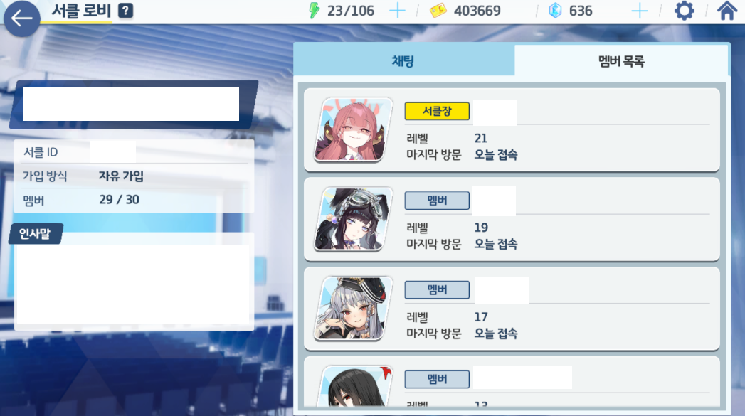 총력전에서 서클멤버 1명의 캐릭터를 빌려쓸수 있다.