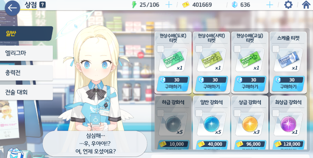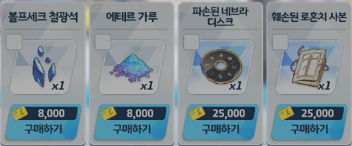 일반상점에서는 재료 4개는 매일 꾸준히 사도록 한다.