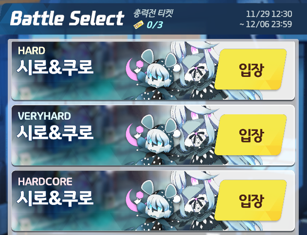 일본서버는 익스트림(하드코어보다 높은)단계까지 있습니다.