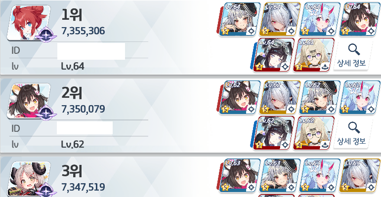 한국서버 기준으로 1위 ~ 10위까지 편성을 본 결과