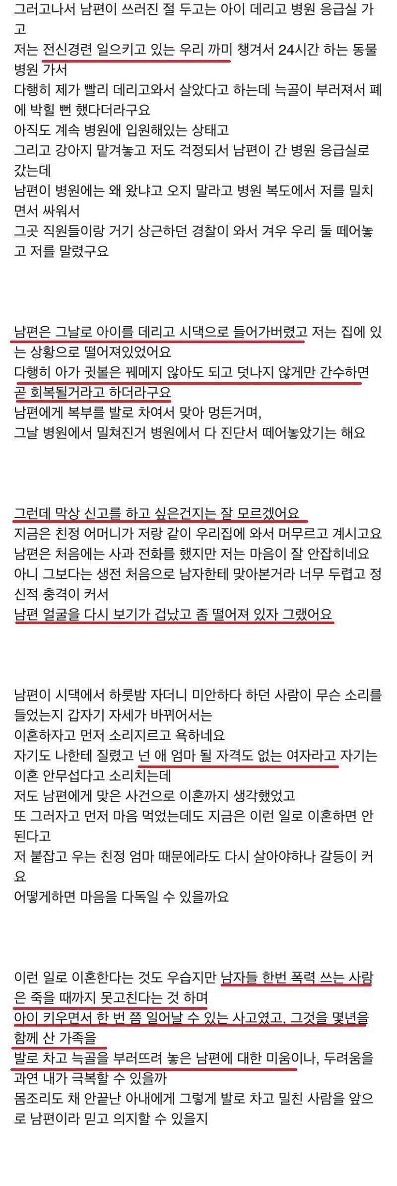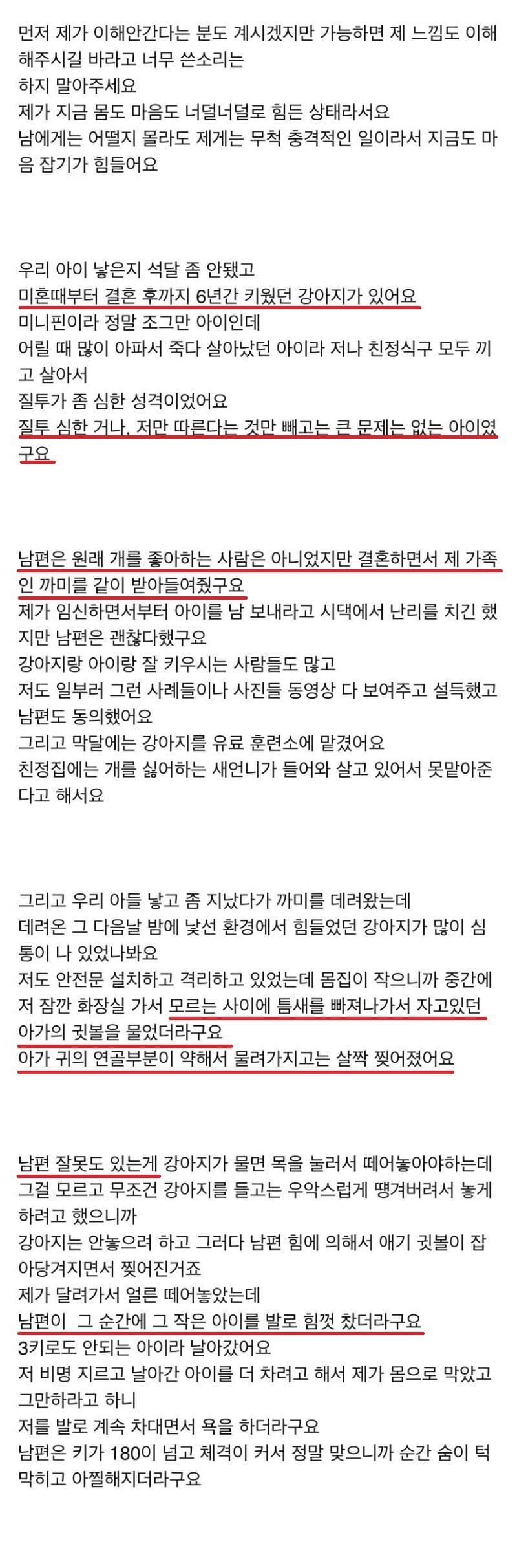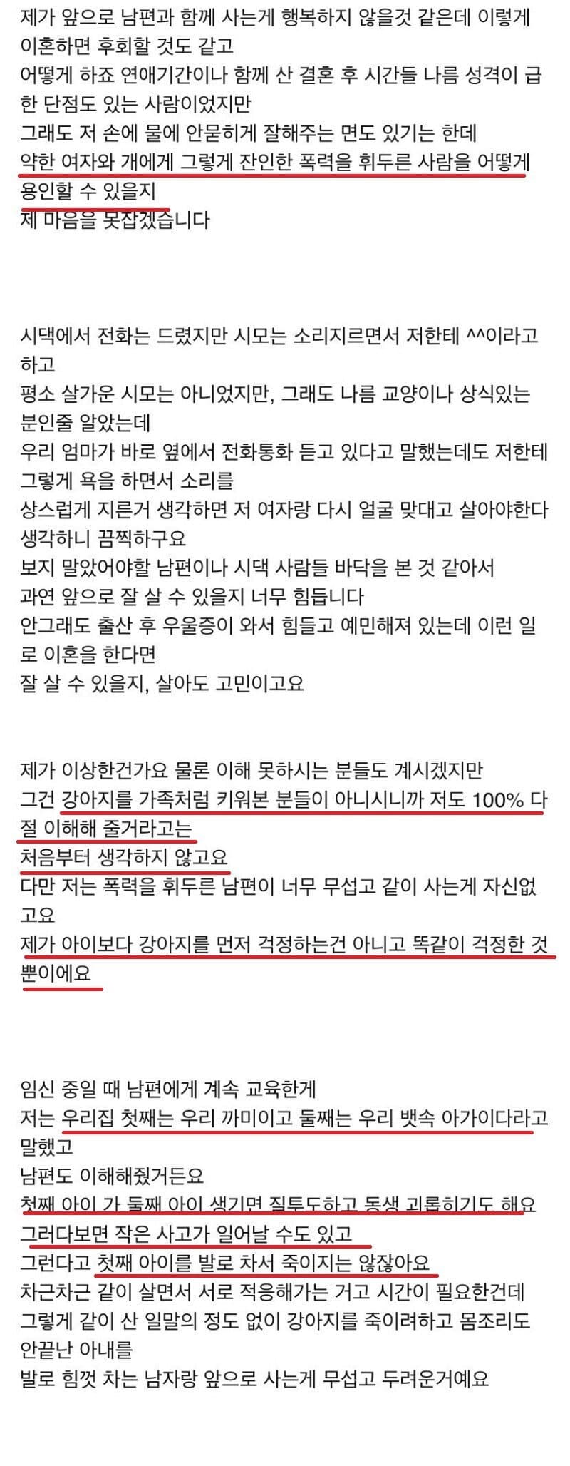 2. 남편이 강아지와 아기를 떨어뜨리고 강아지를 발로 차버림