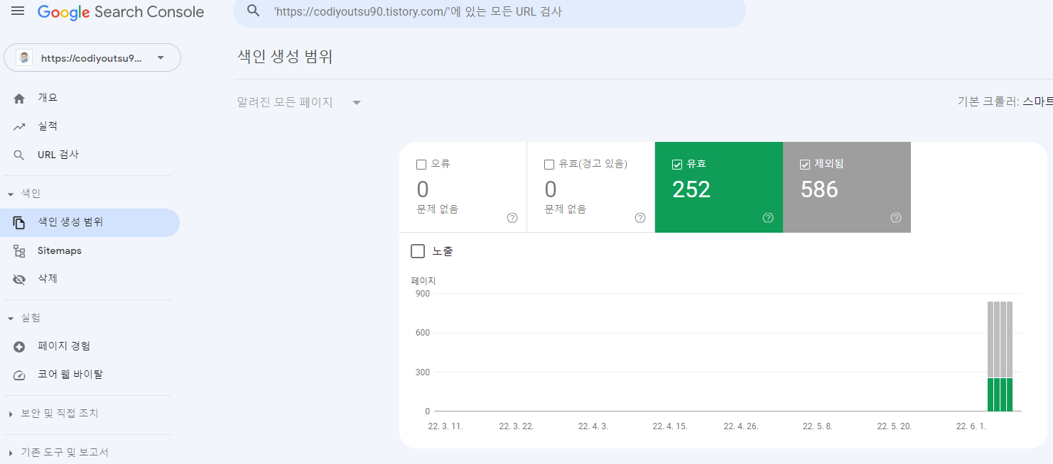 본인 웹사이트를 URL 검사 + 색인 생성 범위 검사를 통해서