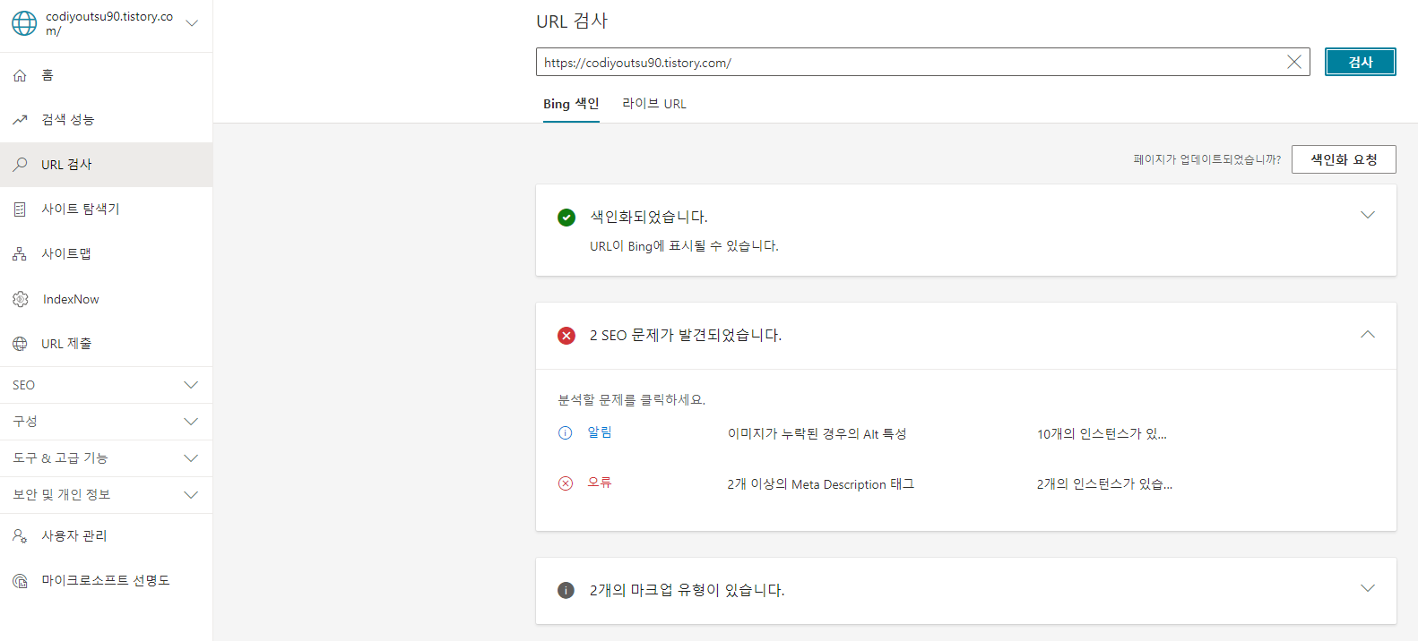 SEO관련 문제로 빙(웹마스터도구)글에서 이것에 대해서