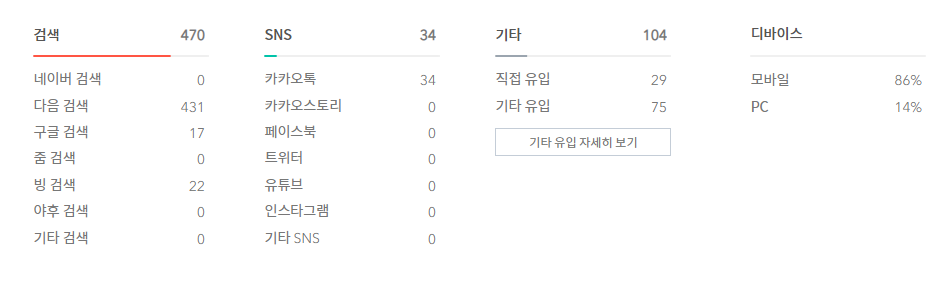 SNS는 제가 잘 안하기 때문에 유입경로가 적을것입니다.