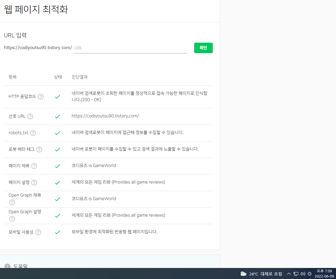네이버 측에서 저를 "저품질 블로그"로 인식하는건 아닌지 점검을 해봤는데