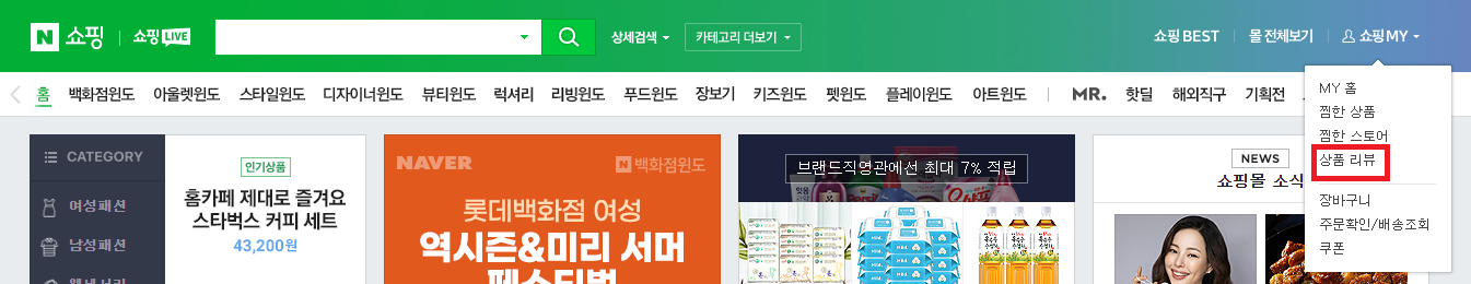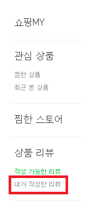 쇼핑MY => 상품 리뷰를 클릭합니다.