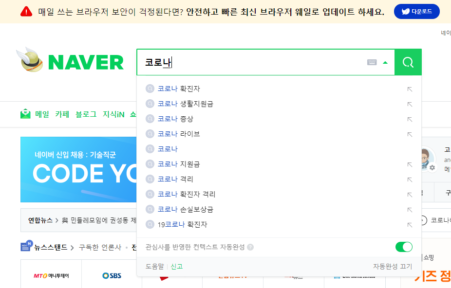코로나 확진자<키워드>를 넣어서 포스팅 하시면 됩니다.