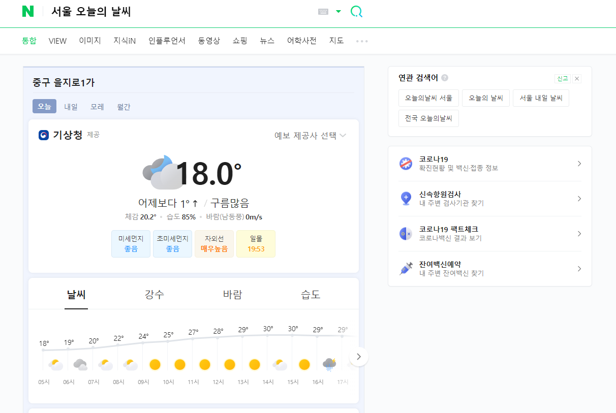 오늘의 날씨는 기상청에서 올려주는 자료나 뉴스기자들 것을 보지