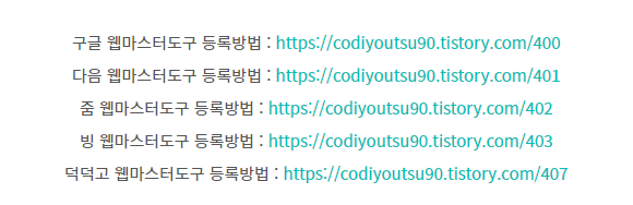 위는 제가 포스팅한 웹마스터도구 등록방법을 적은 포스팅입니다.