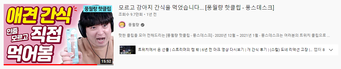 예를 들어) 위의 BJ 풍월량 유튜브 영상입니다.