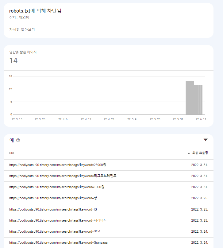 | 다른 4xx 문제로 인해 차단됨 오류 - 구글 웹마스터도구 (2) | 2022.06.13 |