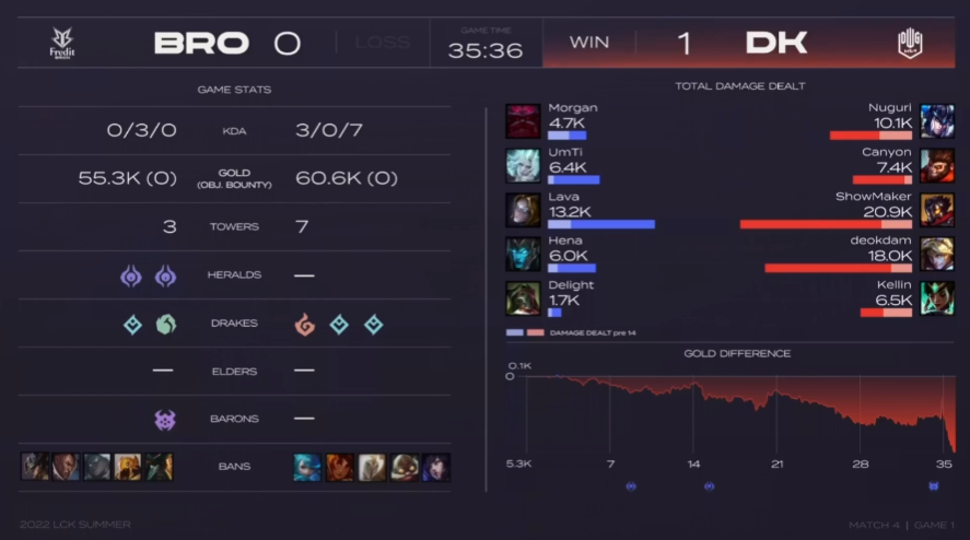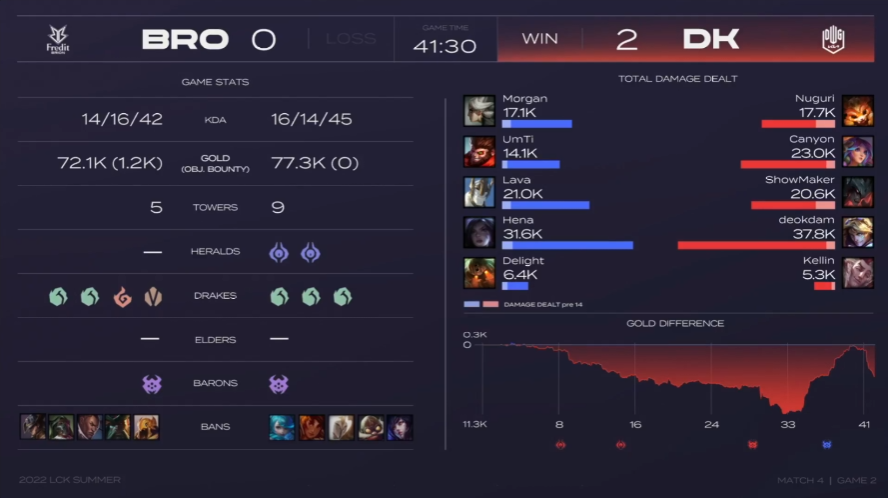 KDA BRO(14 / 16 / 42) VS DK(16 / 14 / 45)