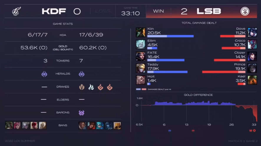 KDA KDF(6 / 17 / 7) VS LSB(17 / 6 / 39)