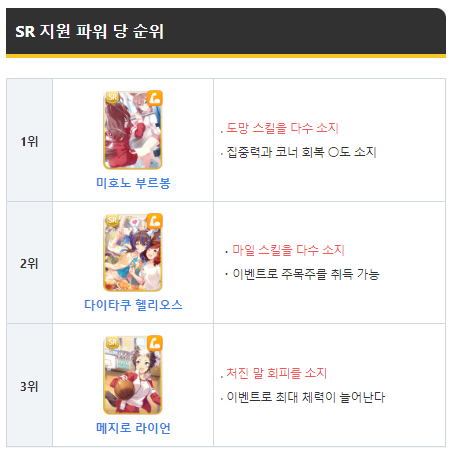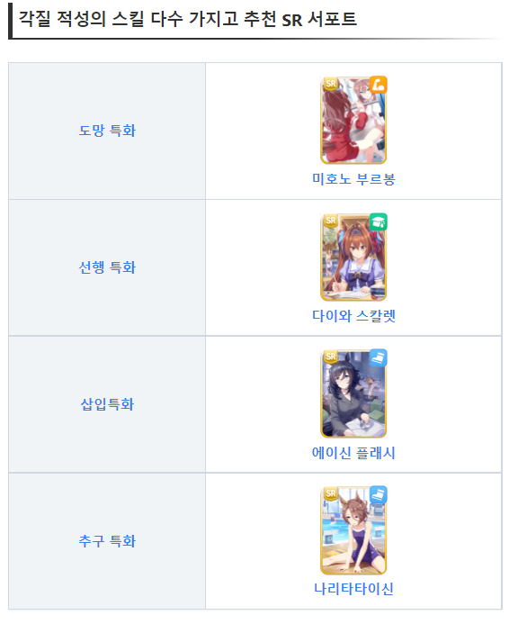 특화 스킬 다수 소지 추천 SR 서포트