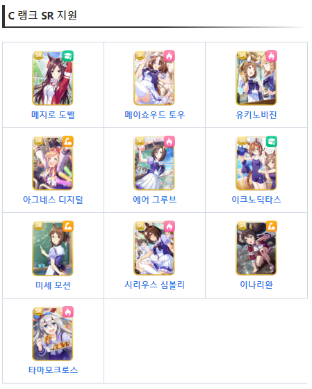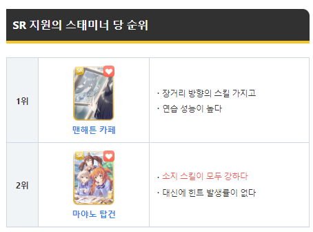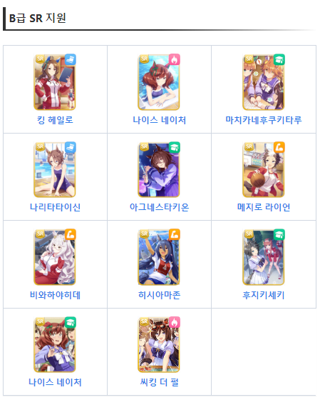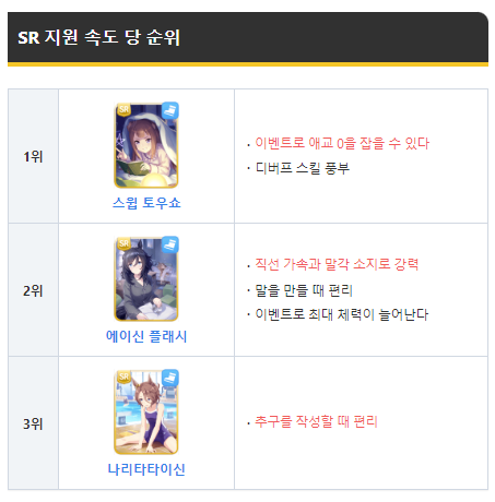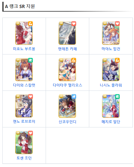 위의 추천 SR캐릭터를 보고
