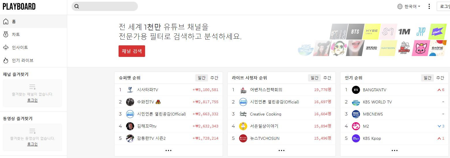본인이 빠르고 정확하며 인기가 많은 유튜브 채널을 찾기를 원하시면
