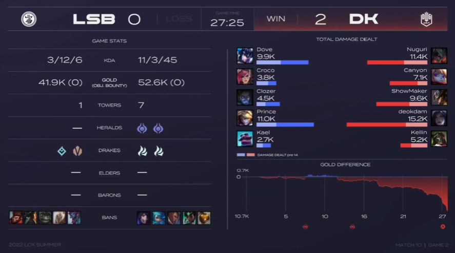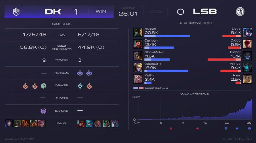 KDA DK(17 / 5 / 48) VS LSB(5 / 17 / 16)