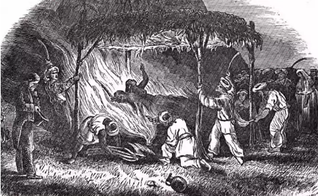 종교적인 말도 안되는 이유로 살아있는 과부를 죽이는 장래문화 사티