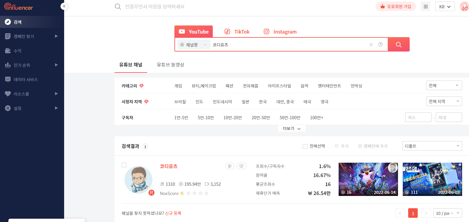 인플루언서 데이터 분석 및 맞춤형 마케팅 서비스 사이트