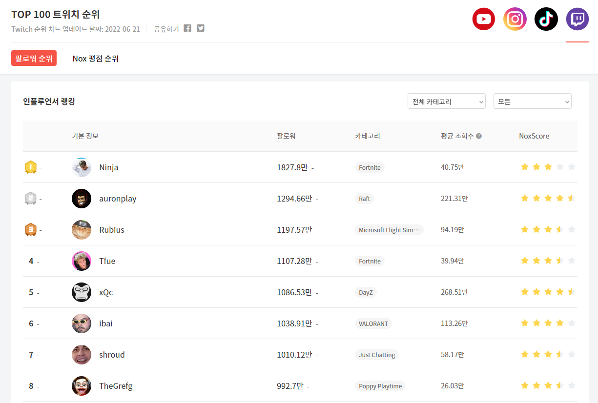 유튜브 + 틱톡 + 인스타그램 + 트위치