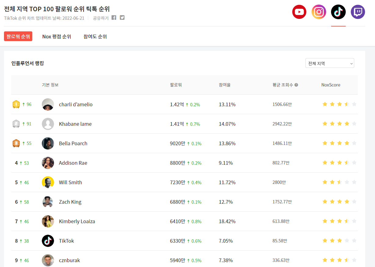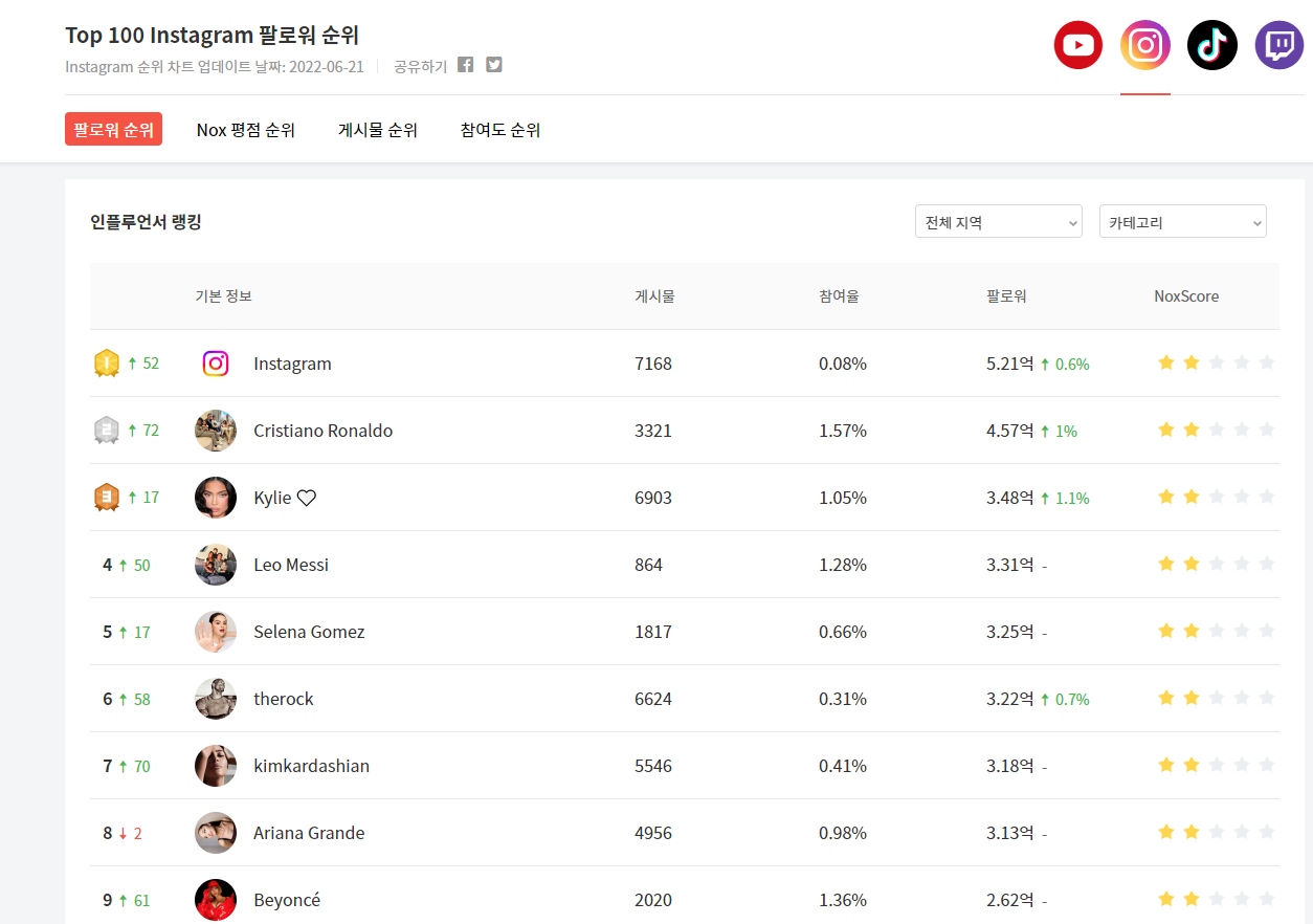 팔로워 + 팔로잉 + 참여율 + 평균 조회수등등 알아볼수 있습니다.