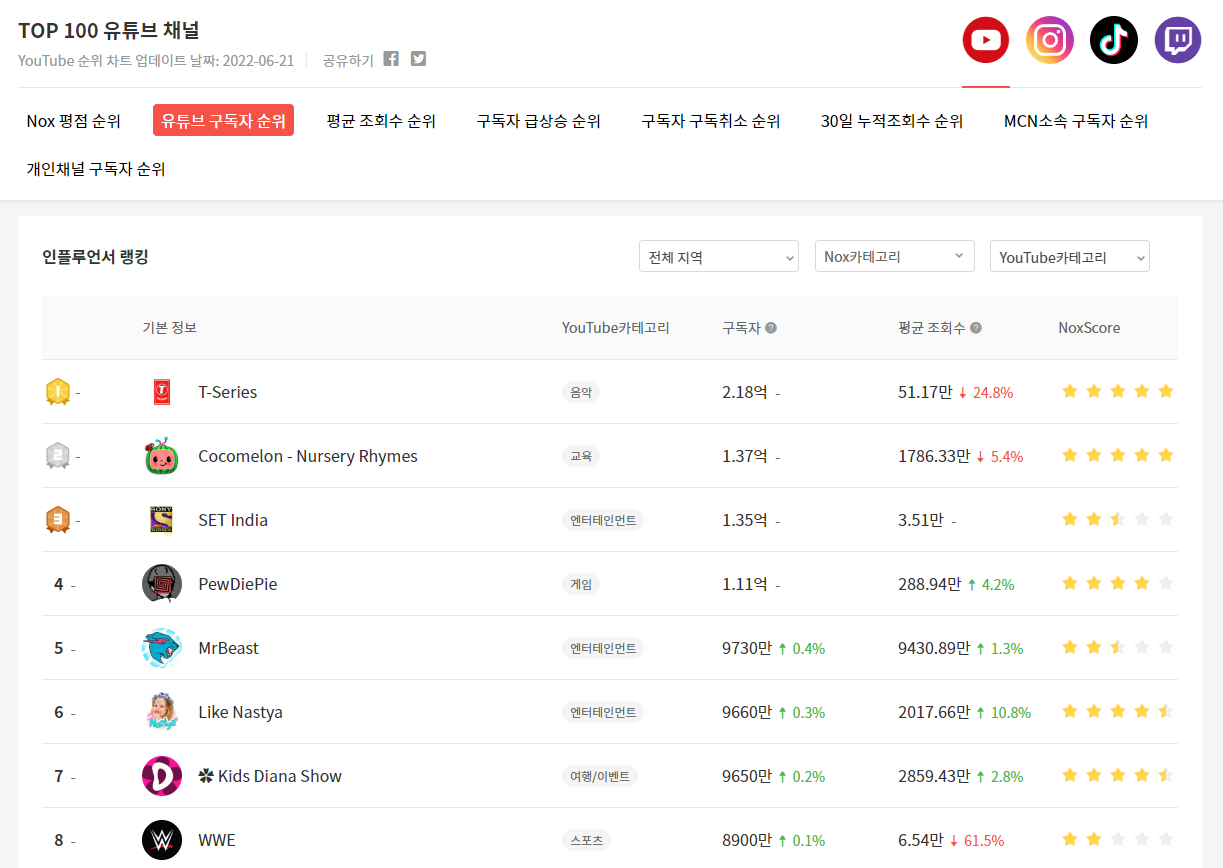 | 전 세계 1천만 유튜브 채널 검색 분석 사이트 (1) | 2022.06.19 |