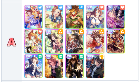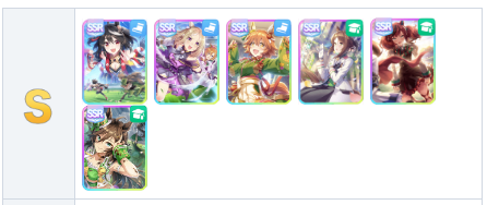 사토노 다이아몬드(이벤트) / 아이네스 후우진(SR) / 메지로 도벨(SR) / 메지로 아르단(SR) / 스루가와 타즈나 / 기류원 아오이(SR)