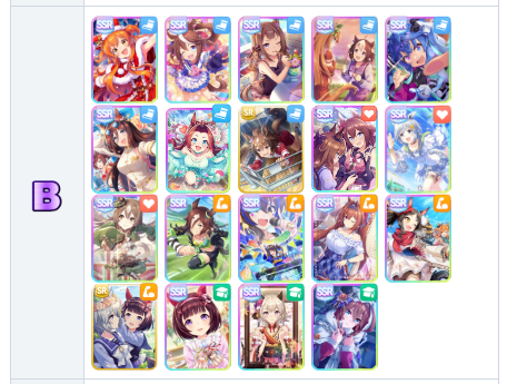 사일런스 스즈카(서클) / 토슨 조던(이벤트) / 나리 타브 라이언(서클) / 골드쉽(이벤트) / 에이신 플래시(SR) / 타마모크로스