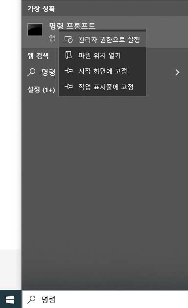 1. Windows에서 명령 프롬프트를 관리자 권한으로 실행합니다.