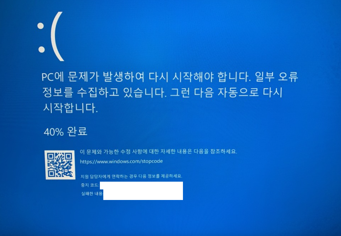 "StopCode" 블루 스크린이 뜨면서 컴퓨터가 재부팅 OR 꺼짐현상이 나올때