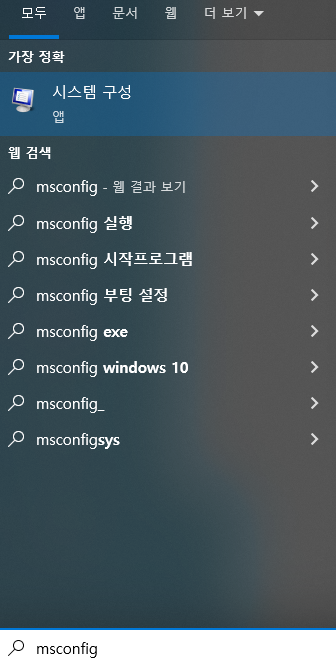 1. Windows 검색에서 msconfig를 검색하여 시스템 구성을 실행합니다.