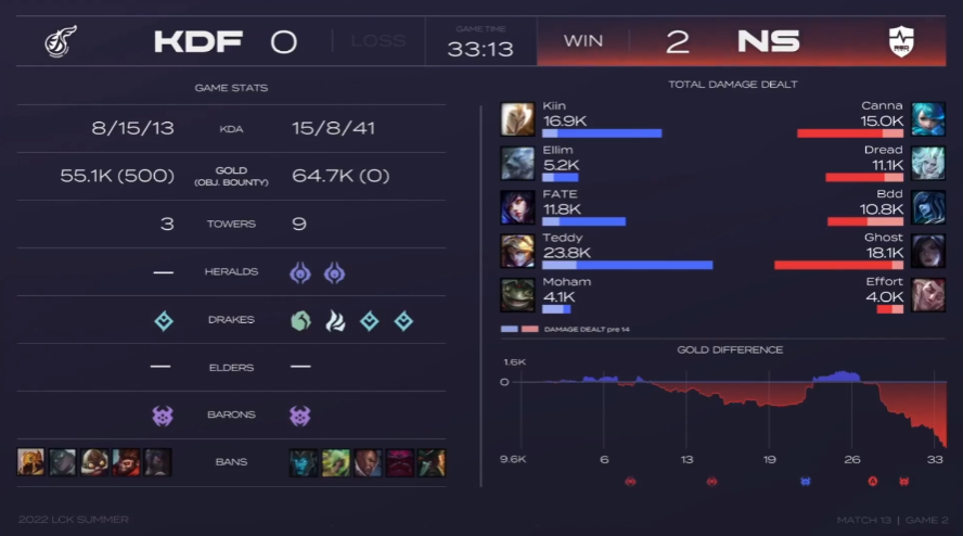 KDA KDF(8 / 15 / 13) VS NS(15 / 8 / 41)