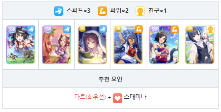 스피드 + 파워 + 스태미나를 편성하는 서포트