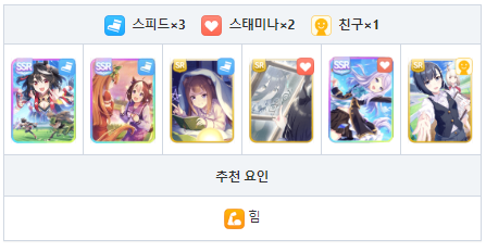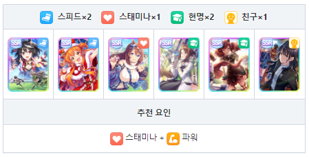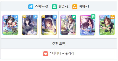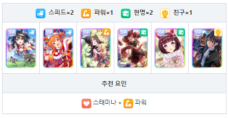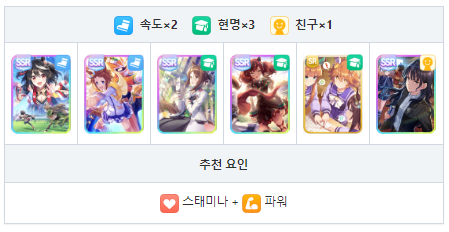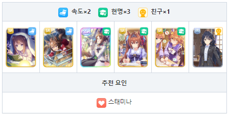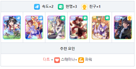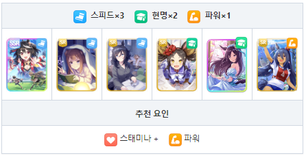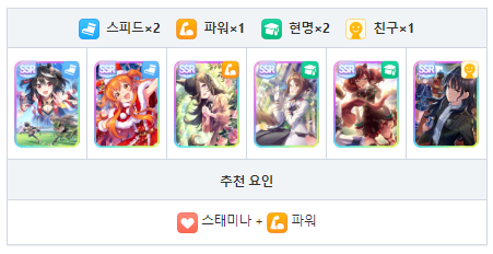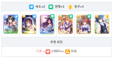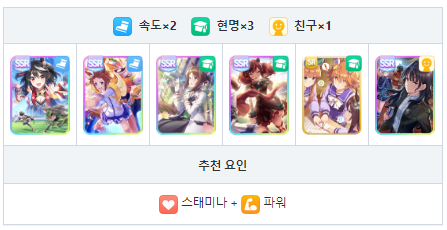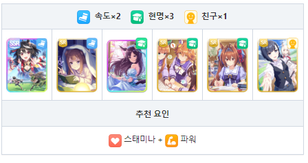 스피드와 현명 중심의 서포트 카드 편성 궁합이 좋은 성장 보너스