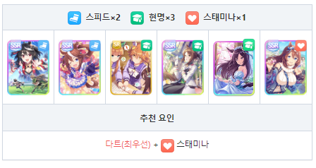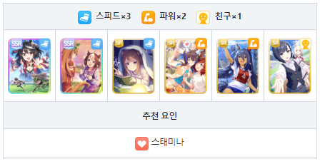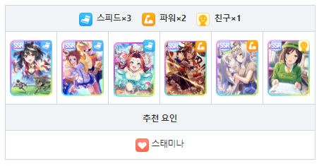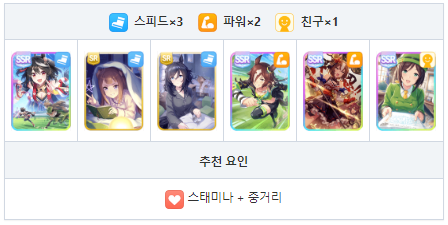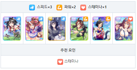 회복 스킬이 없기 때문에 서포트에서 스태미나 회복 스킬 추천