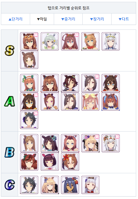 중거리를 가장 추천 + (마일 + 장거리도 출전가능)