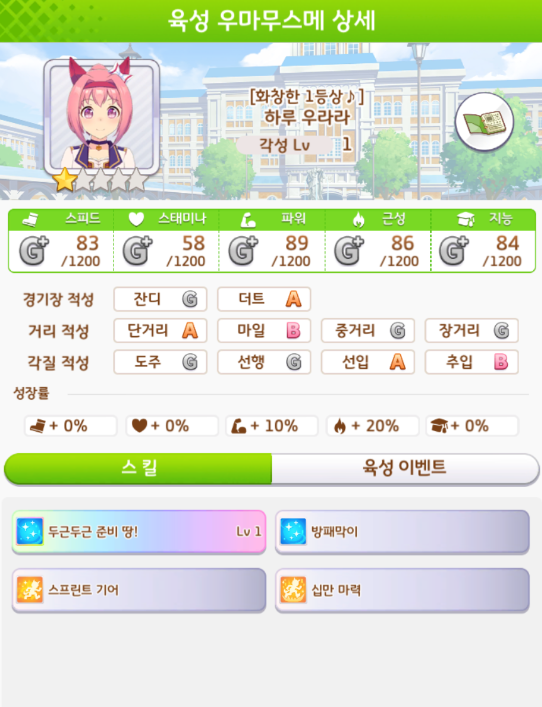 스피드 / 스태미나 / 파워 / 근성 / 지능 ALL+5